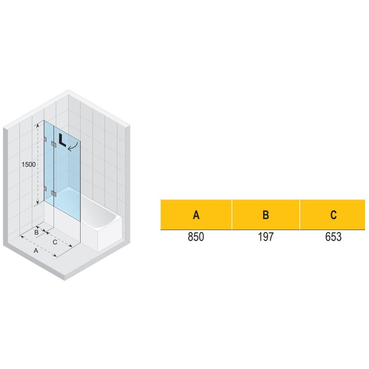 Riho Scandic Badewannenabtrennung 85 cm zweigeteilt schwarz Matte/durchsichtiges Glas G001152121