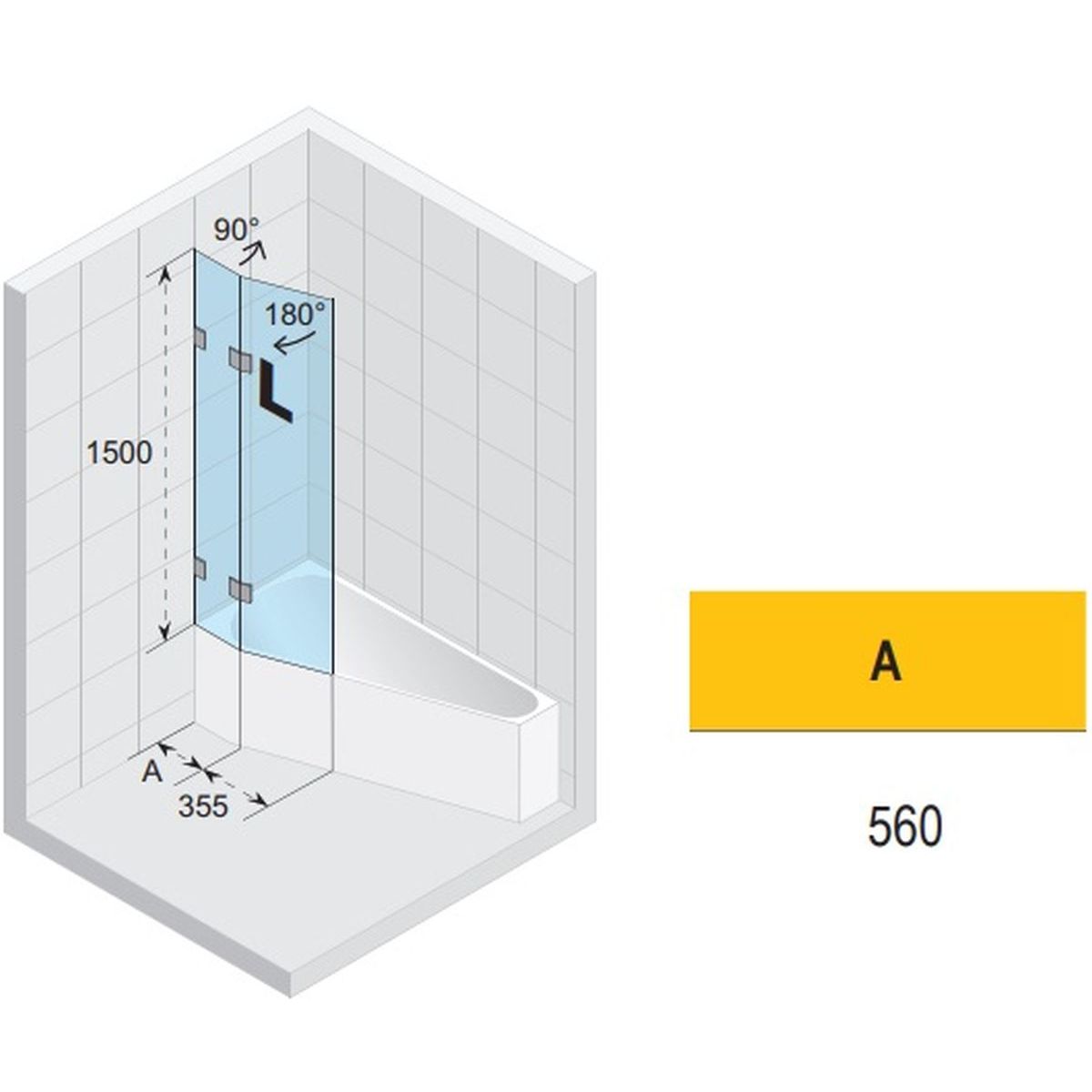 Riho Scandic Badewannenabtrennung 91.5 cm zweigeteilt chrom Glanz/durchsichtiges Glas G001172120