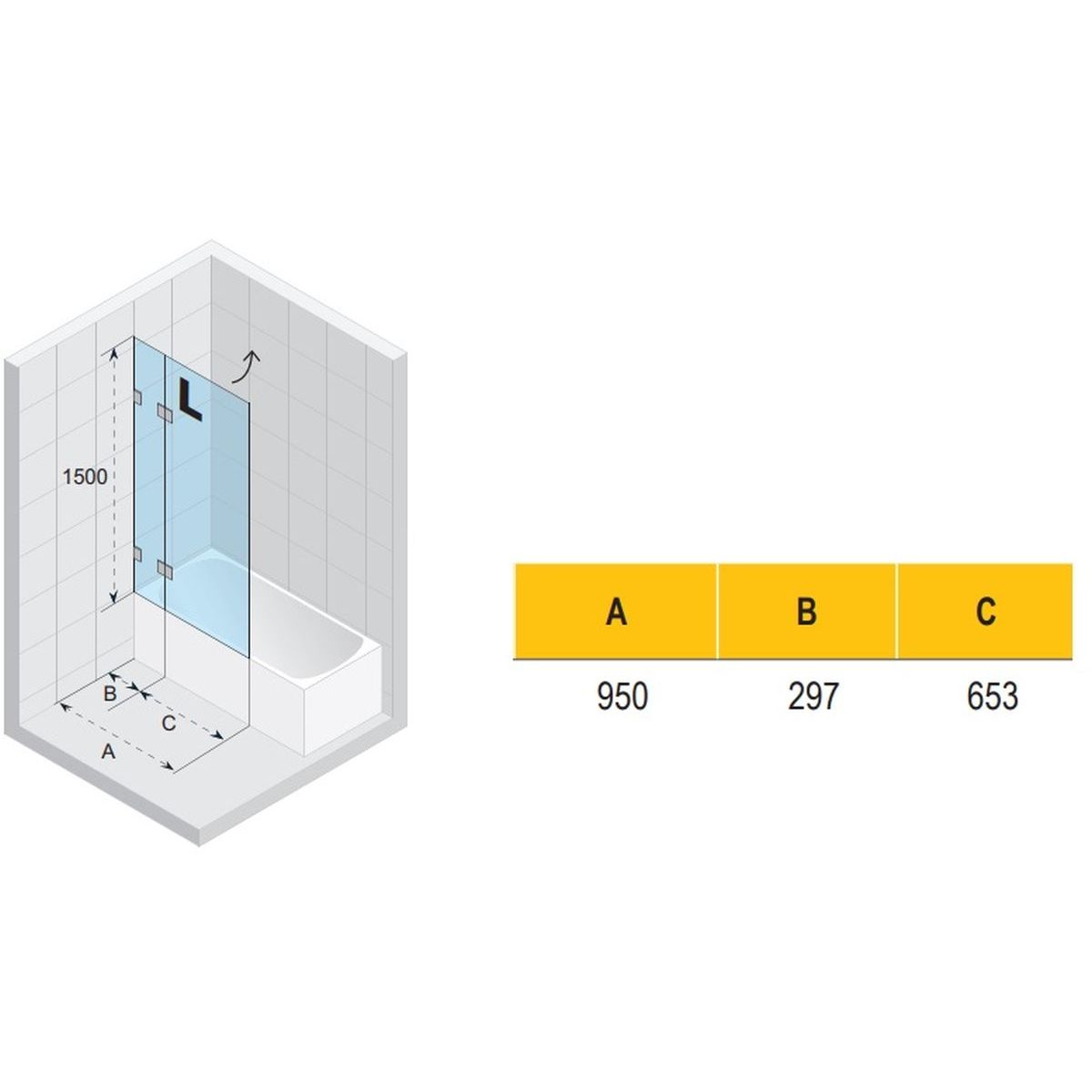 Riho Scandic Badewannenabtrennung 95 cm einteilig chrom Glanz/durchsichtiges Glas G001148120