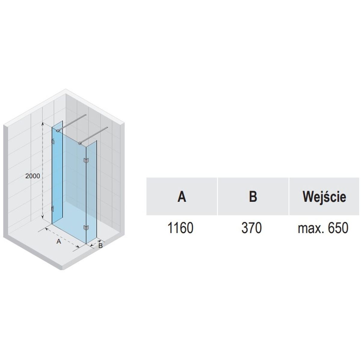 - tatsächliche Wandabmessung (A): 116 cm