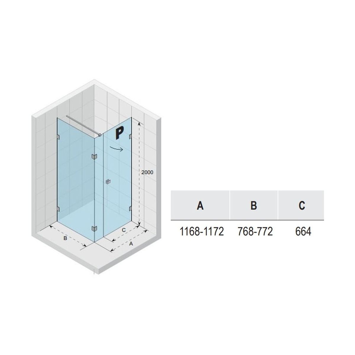 - Türbreite (C): 66,4 cm
