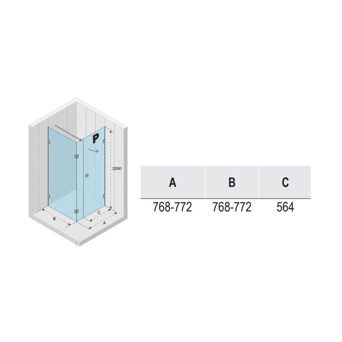 - Türbreite (C): 56,4 cm