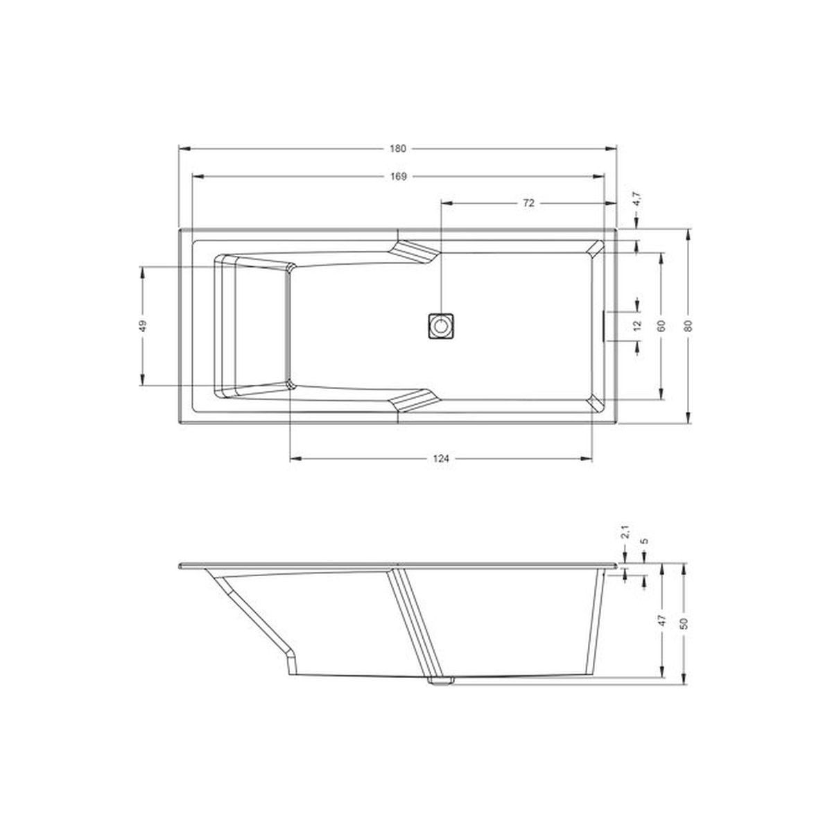 Riho Still Shower LED Rechteckige Badewanne 180x80 cm weiß B103004005