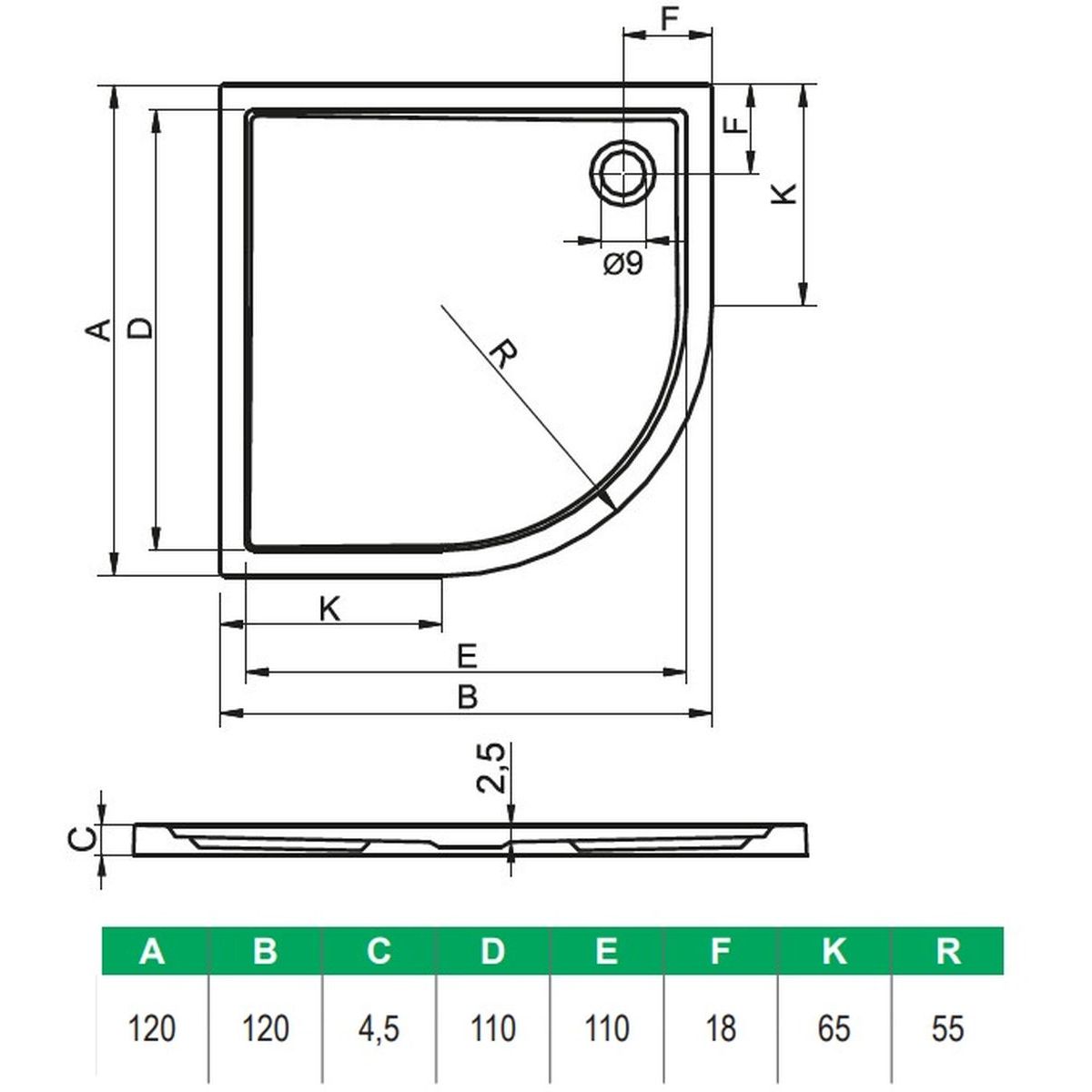 Riho Zurich Halbrunde Duschwanne 120x120 cm weiß D001024005