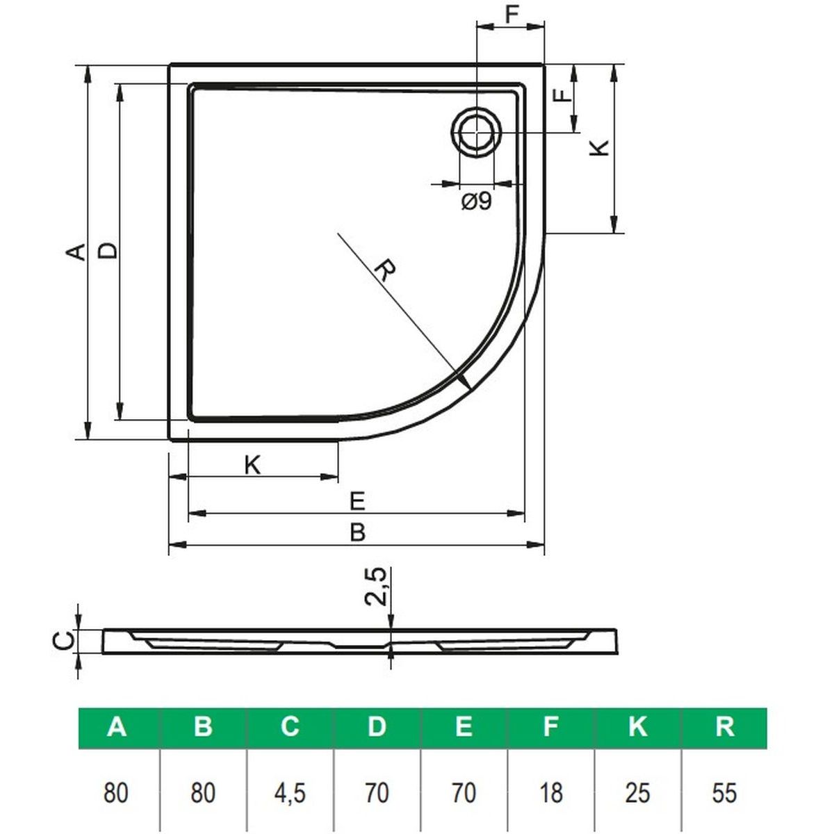 Riho Zurich Halbrunde Duschwanne 80x80 cm weiß D001021005