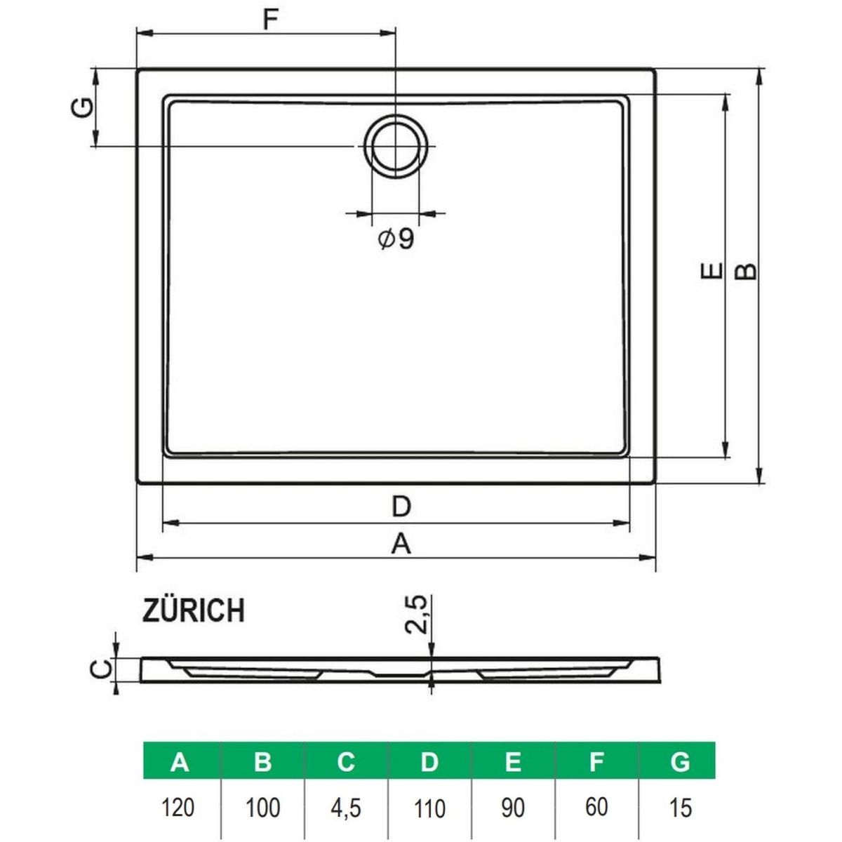 Riho Zurich Rechteckige Duschwanne 120x100 cm weiß D001005005