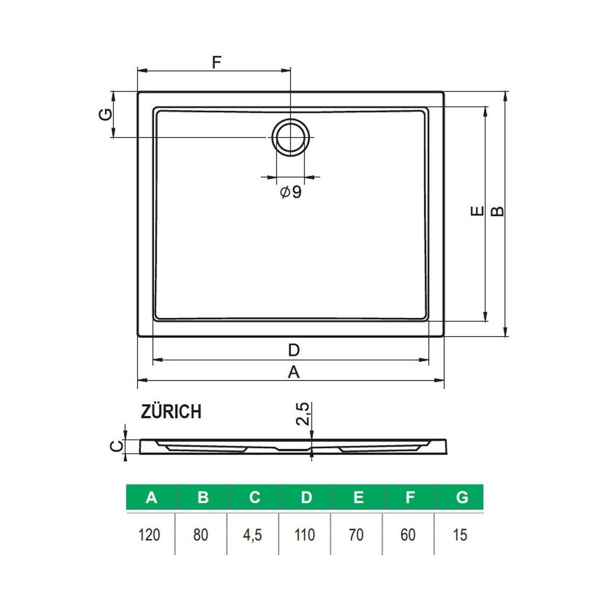 Riho Zurich Rechteckige Duschwanne 120x80 cm weiß D001015005
