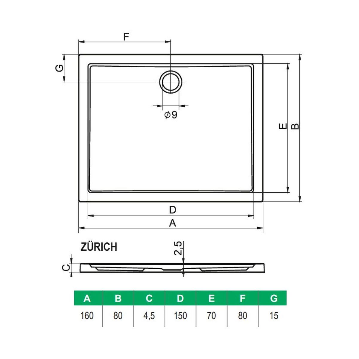 Riho Zurich Rechteckige Duschwanne 160x80 cm weiß D001019005
