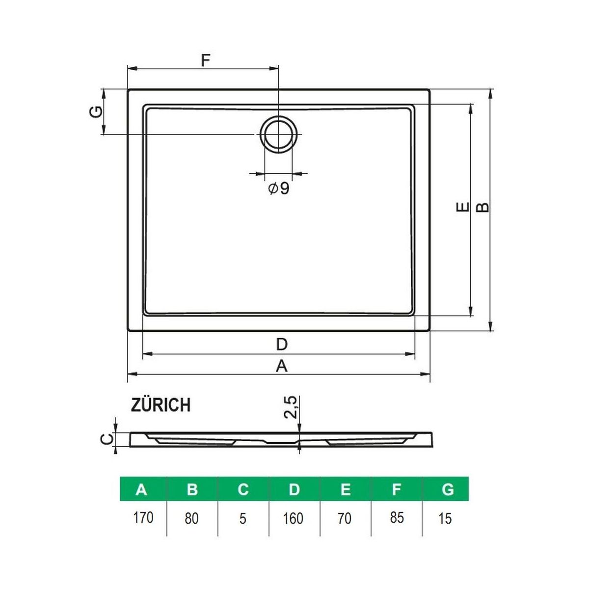 Riho Zurich Rechteckige Duschwanne 170x80 cm weiß D001018005