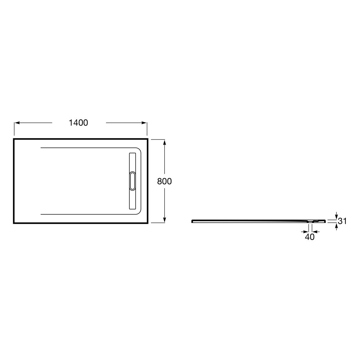- Höhe der Duschwanne 3,1 cm
