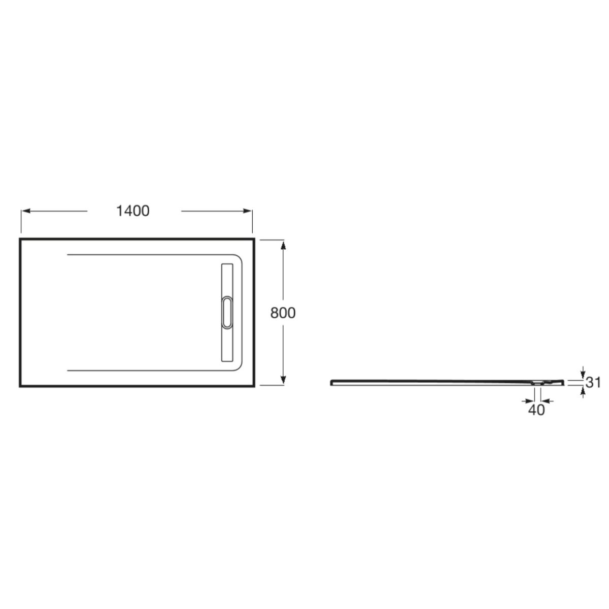 - Höhe der Duschwanne 3,1 cm