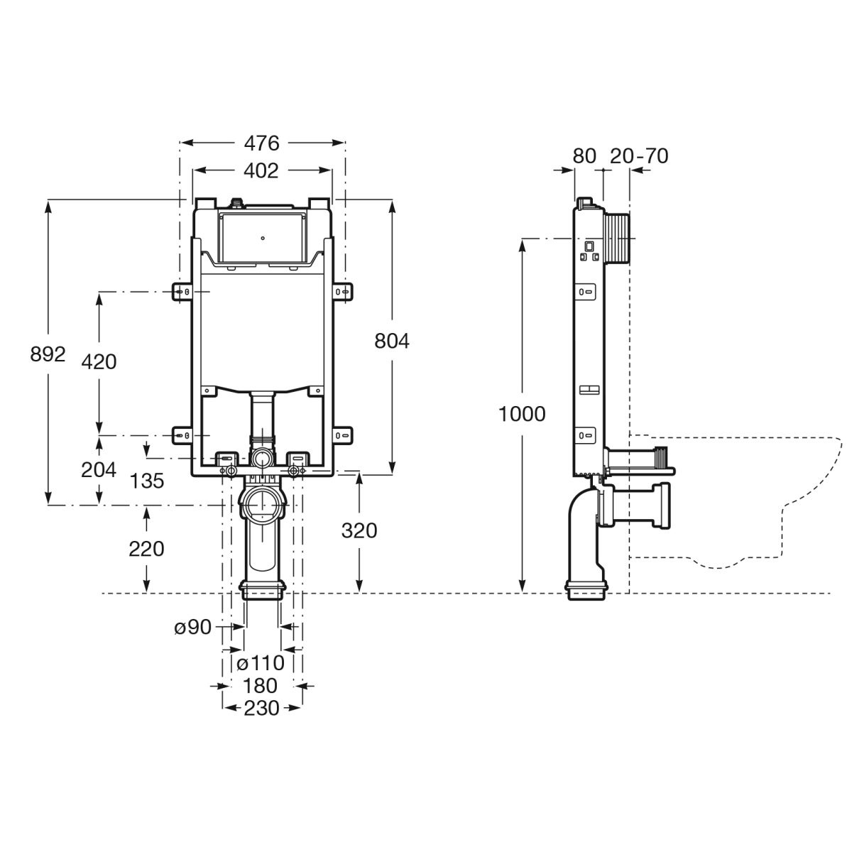 Roca Basic Unterputzrahmen in der hängenden Schüssel A890070120