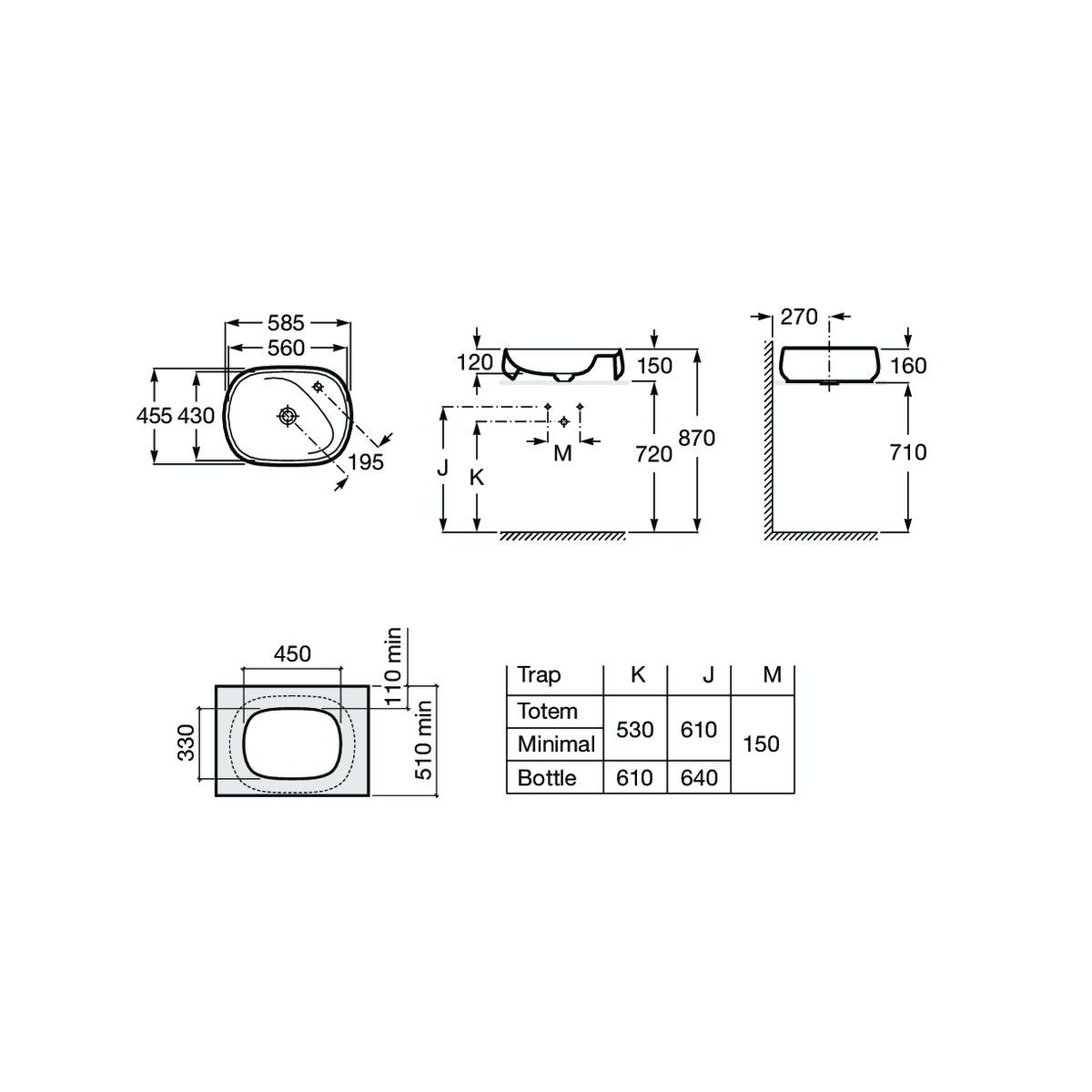 Roca Beyond Waschbecken 58.5x45.5 cm oval Aufsatzwaschbecken A3270B8640