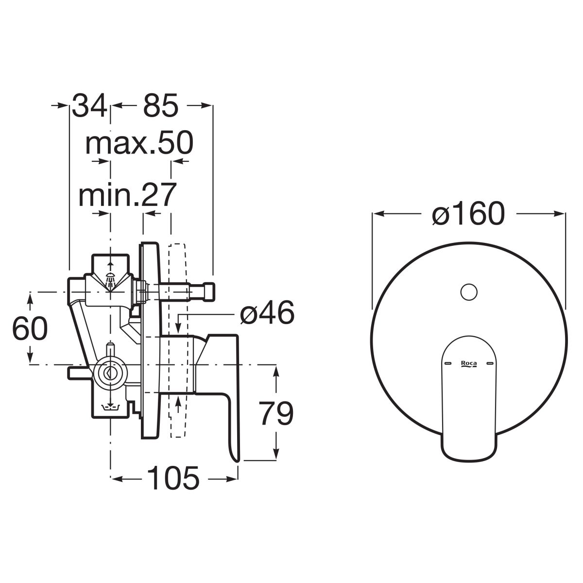 Roca Cala Badewannen- und Duscharmatur Unterputz chrom A5A066EC00