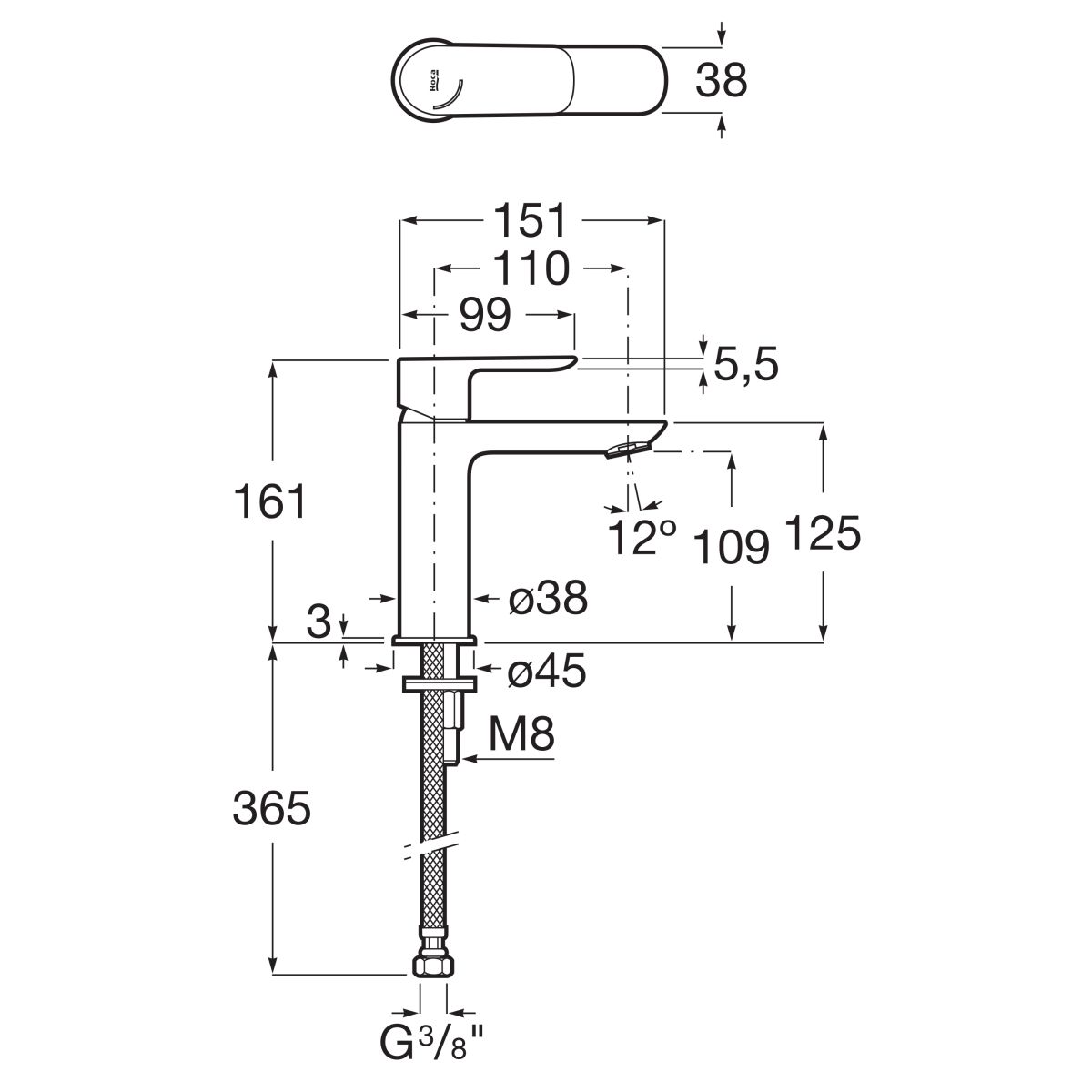 Roca Cala Waschtischarmatur Stehend schwarz A5A326ENBM