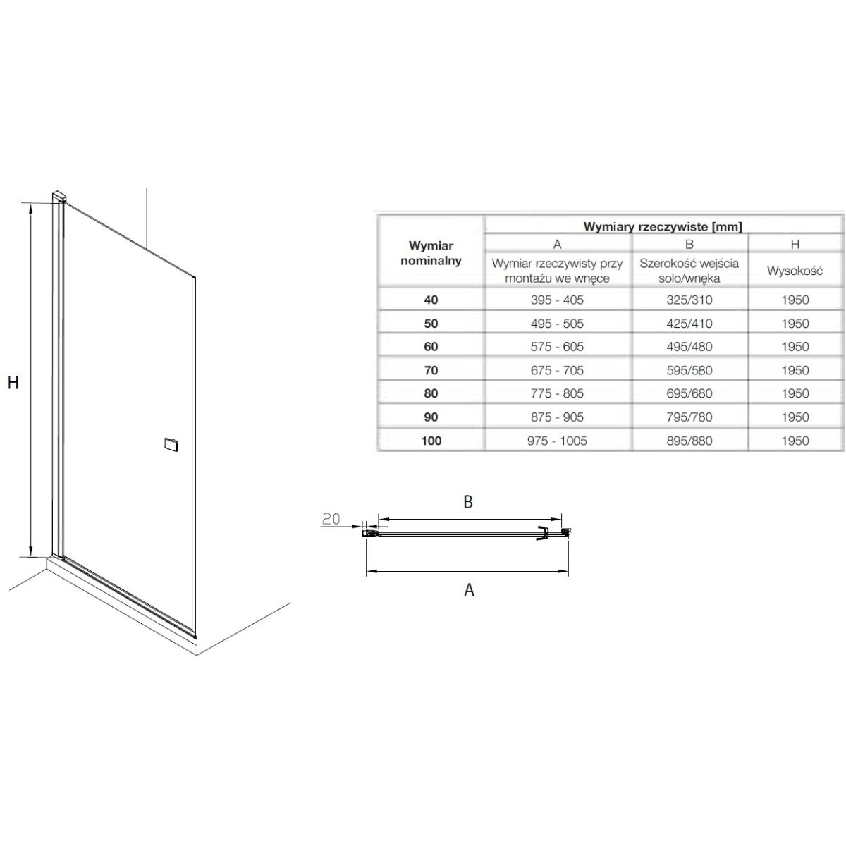 Für die Montage in einer Nische ist ein zusätzliches Wandprofil AM48195020 erforderlich. Bei Verwendung des Profils lassen sich die Türen nur nach außen öffnen.