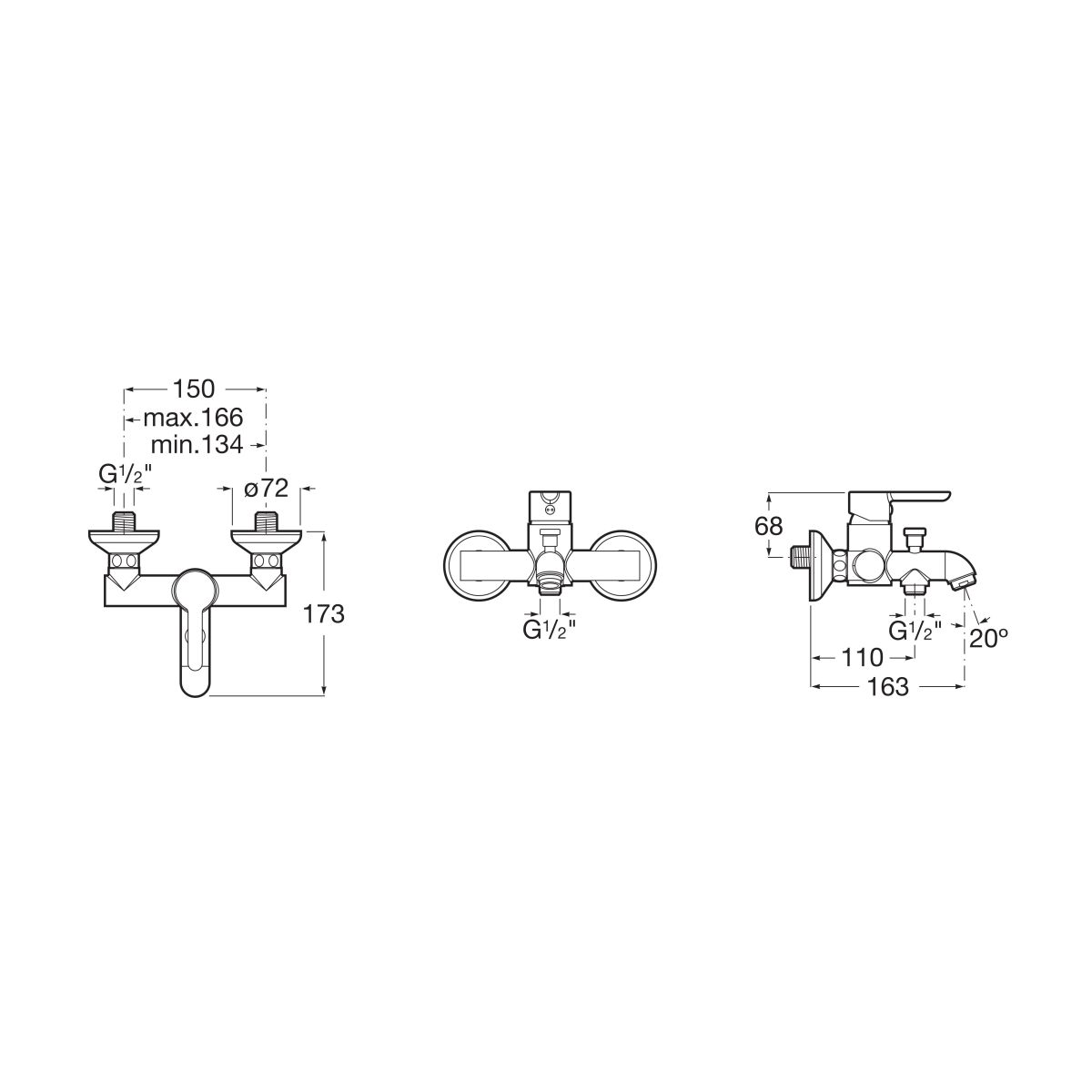 Roca Carelia Badewannen- und Duscharmatur Wandmontage chrom A5A028AC0K