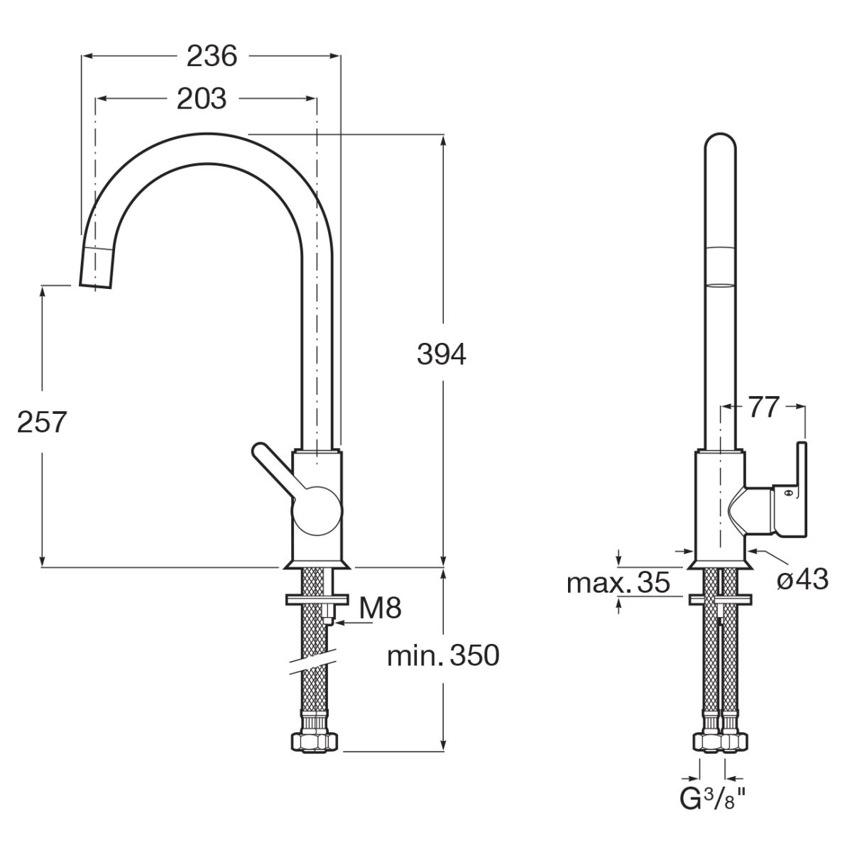 - flexible Anschlussschläuche
