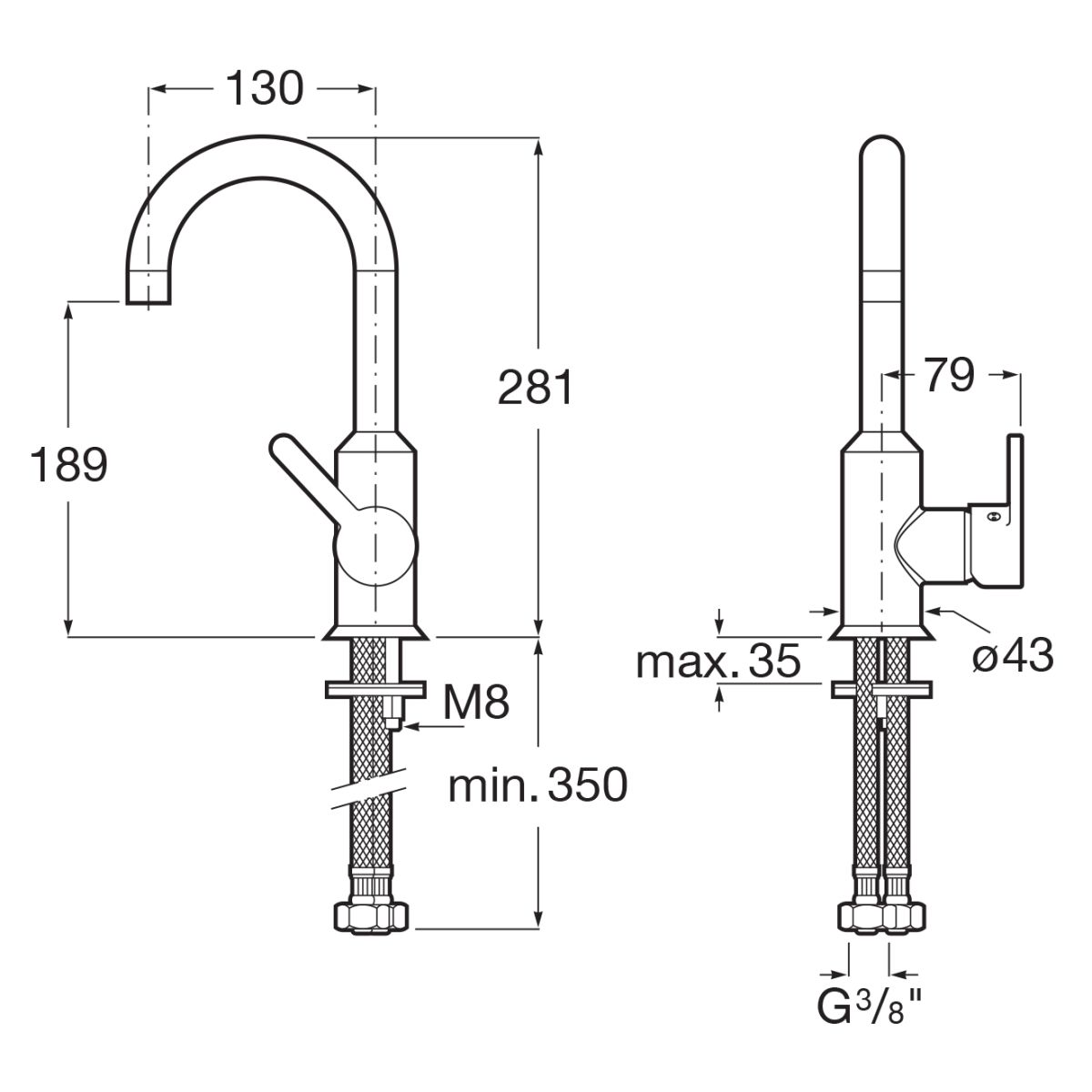 - flexible Anschlussschläuche