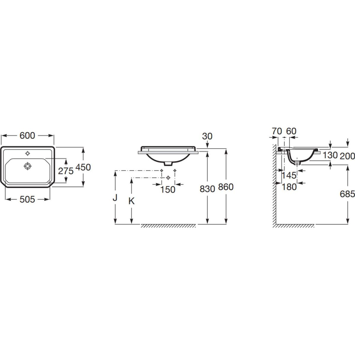 Roca Carmen Waschbecken 60x45 cm rechteckig Einbauwaschbecken weiß A3270A5000