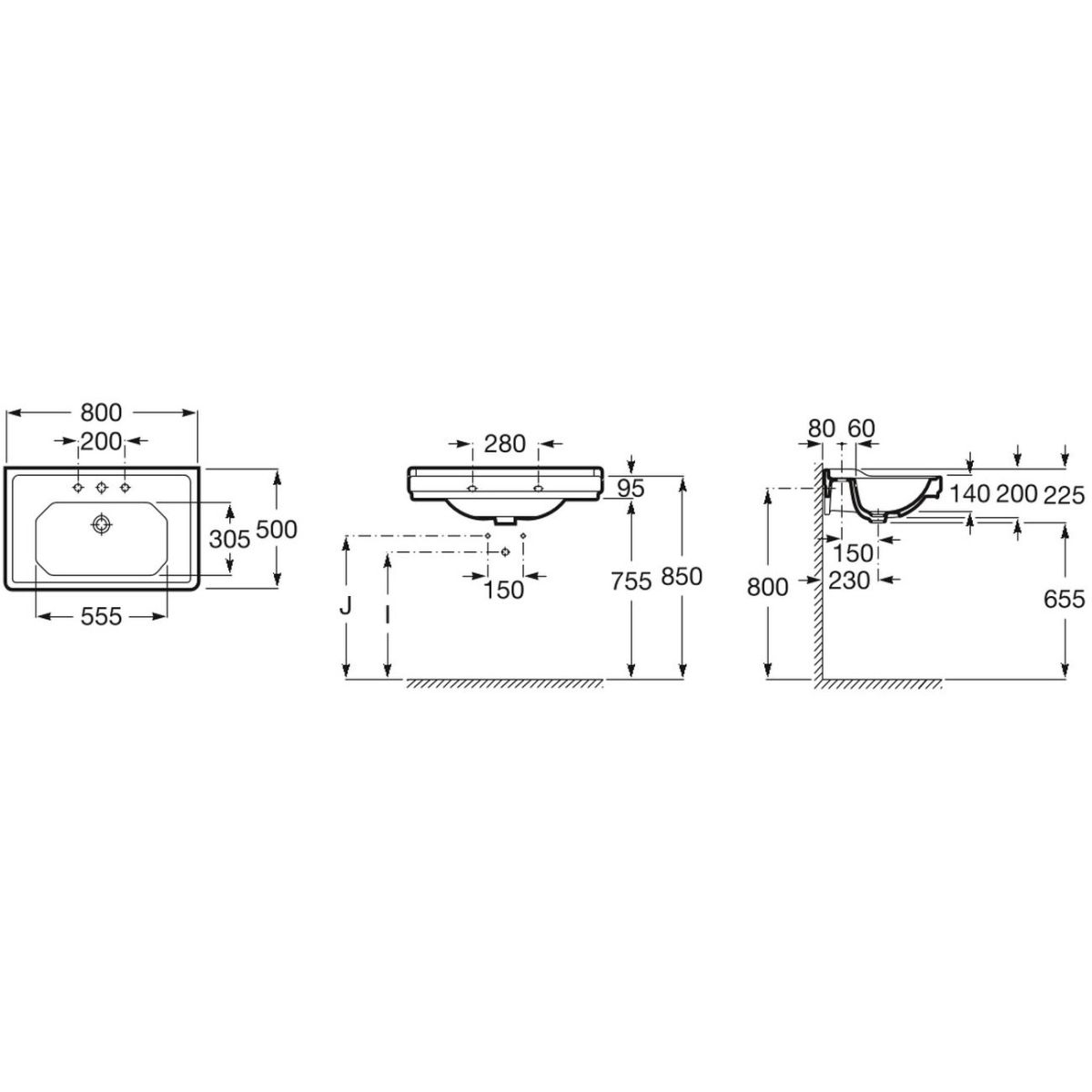 Roca Carmen Waschbecken 80x50 cm rechteckig Klassisch weiß A3270A0003