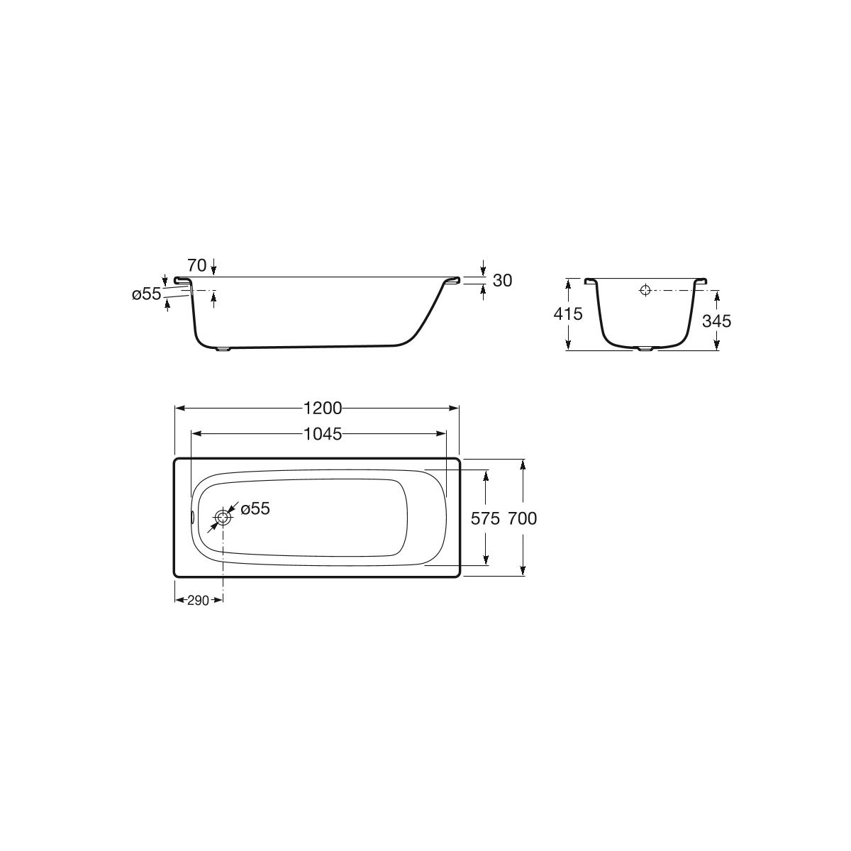 Roca Contesa Rechteckige Badewanne 120x70 cm weiß A212106001