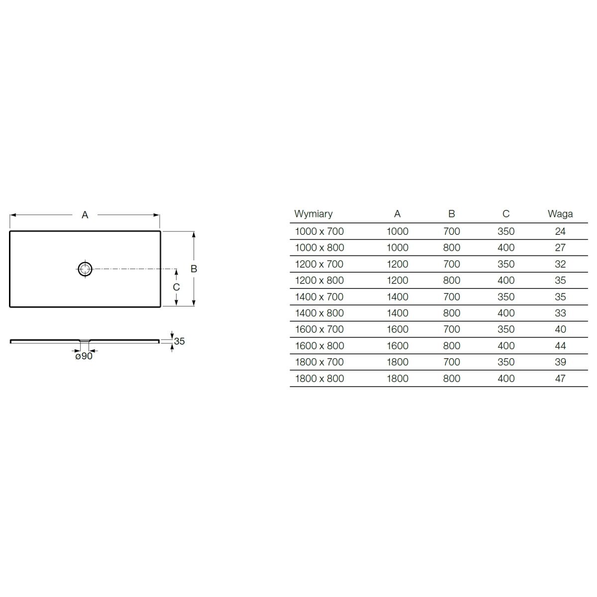 - Duschwanke Höhe 35 mm