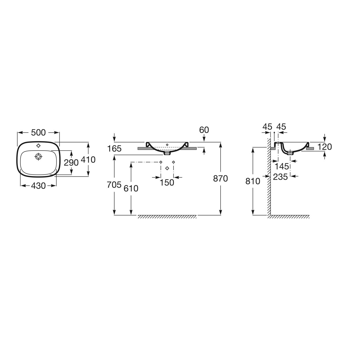 Roca Debba Waschbecken 51x41 cm rechteckig Einbauwaschbecken weiß A32799M000