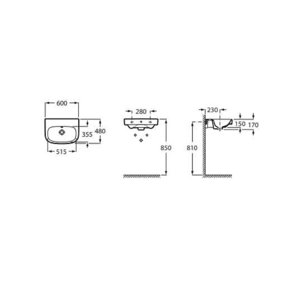 Roca Debba Waschbecken 60x48 cm rechteckig weiß A32599400N
