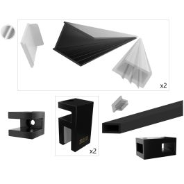 - Im Lieferumfang enthalten: zwei Aluminiumprofile 200 cm, Querhalterung 200 cm, Wandbefestigungen und Kreuzhalterungen
