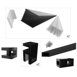 - Im Lieferumfang enthalten: zwei Aluminiumprofile 200 cm, Querhalterung 200 cm, Wandbefestigungen und Kreuzhalterungen