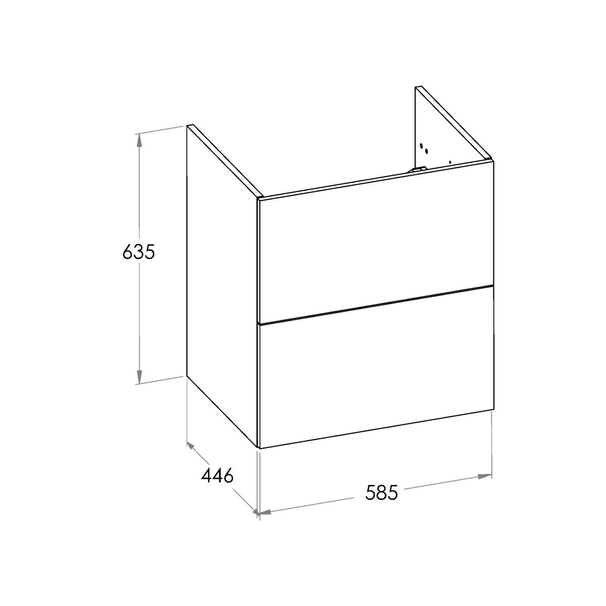 - Sockel/Verbindung von Türen und Schubladen: 2 Schubladen
