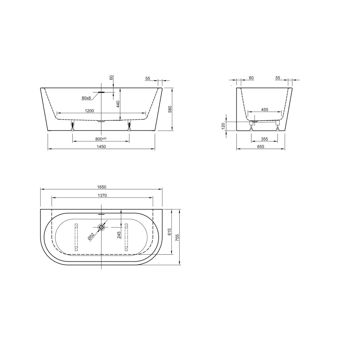 Roca Eternity Wandmontierte Badewanne 165x75.5 cm oval weiß A24T453000