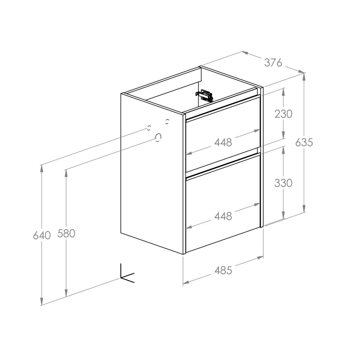 - Sockel/Verbindung von Türen und Schubladen: 2 Schubladen