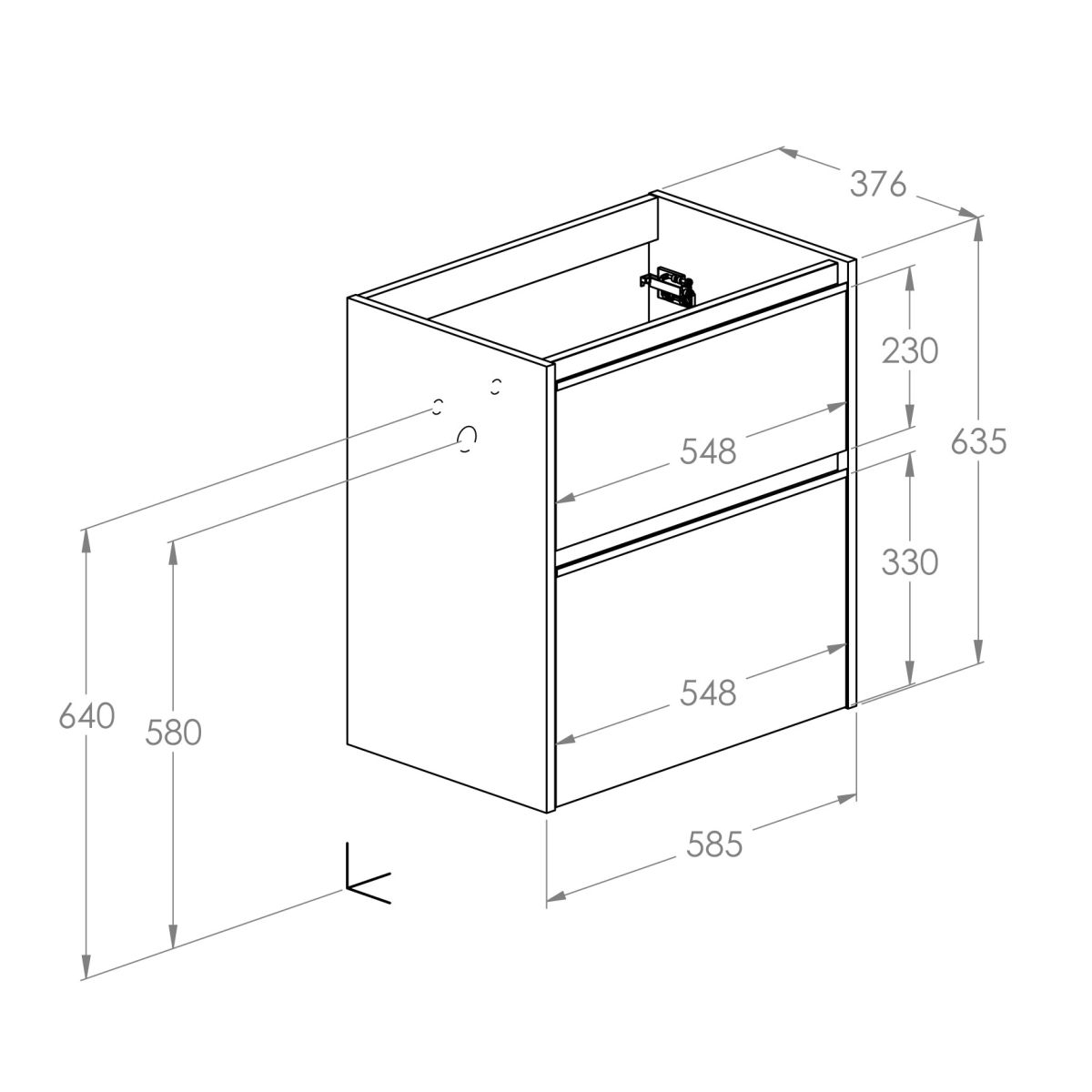 - Sockel/Verbindung von Türen und Schubladen: 2 Schubladen