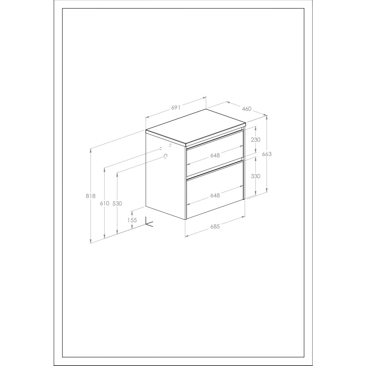 - Sockel/Verbindung von Türen und Schubladen: 2 Schubladen