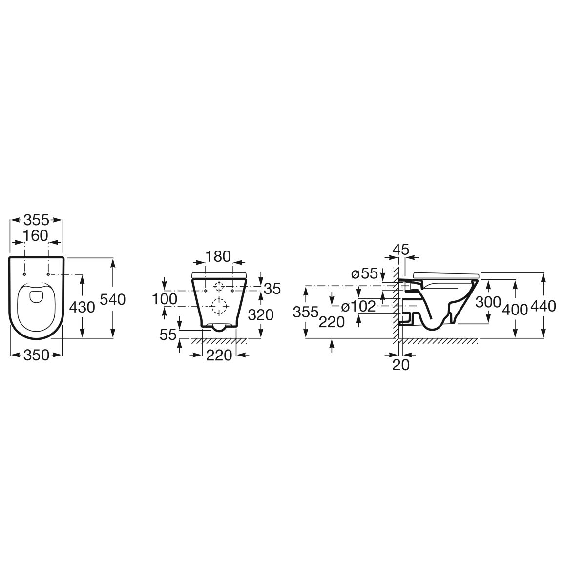 Roca Gap Round WC-Becken hängend Spülrandlos weiß A3460NL000