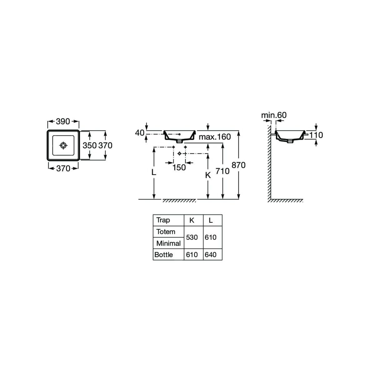 Roca Gap Waschbecken 39x37 cm rechteckig Einbauwaschbecken weiß A3270Y7000