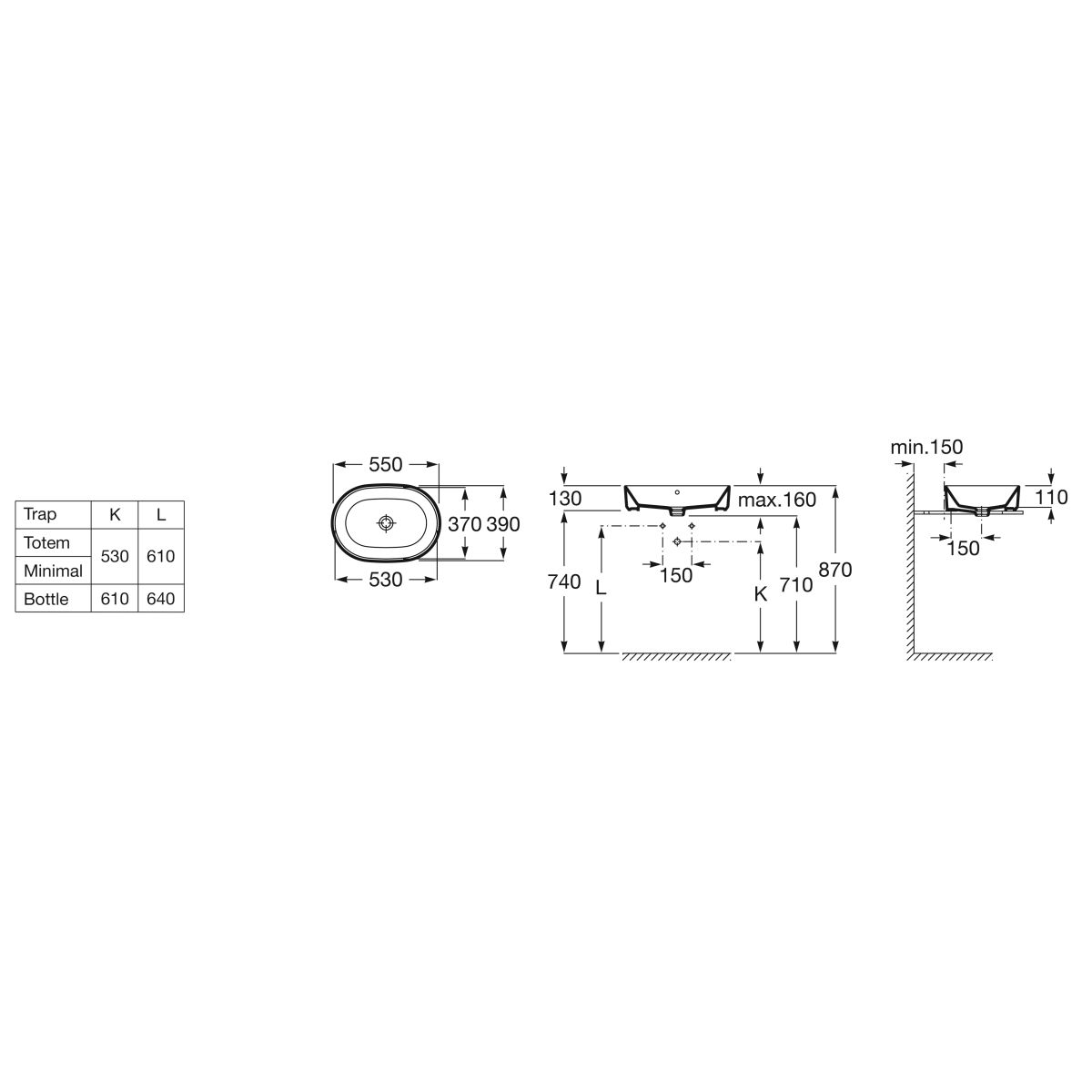 Das ovale Aufsatzwaschbecken Roca Gap 55 × 39 A3270Y1000 in Weiß passt perfekt zu den anderen Elementen der Gap-Kollektion, darunter auch zu den beliebten Modellen Gap Round. Dank seiner minimalistischen Form lässt es sich leicht mit modernen Aufsatzarmaturen kombinieren und schafft so ein einheitliches und funktionales Badezimmerdesign. Im Lieferumfang ist auch eine Montageschablone enthalten, die die korrekte Befestigung des Waschbeckens in der Arbeitsplatte erleichtert.
