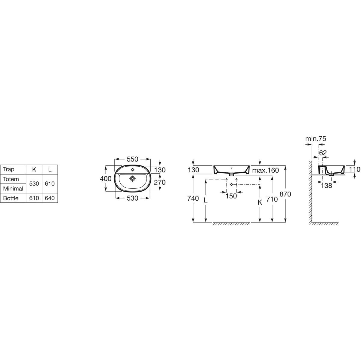 Roca Gap Waschbecken 55x40 cm oval Aufsatzwaschbecken weiß A3270Y0000