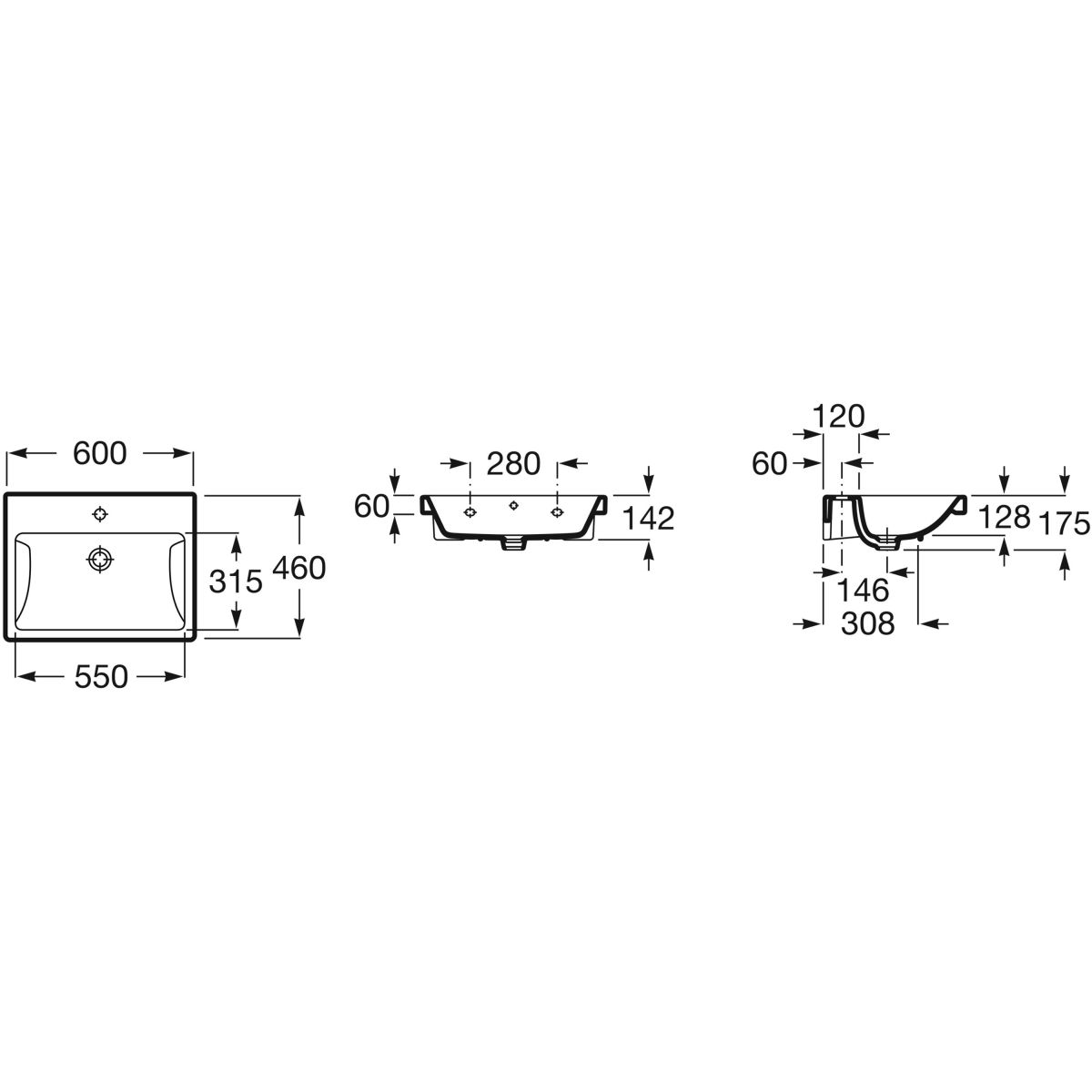 Roca Gap Waschbecken 60x46 cm rechteckig Klassisch weiß A3270M1000