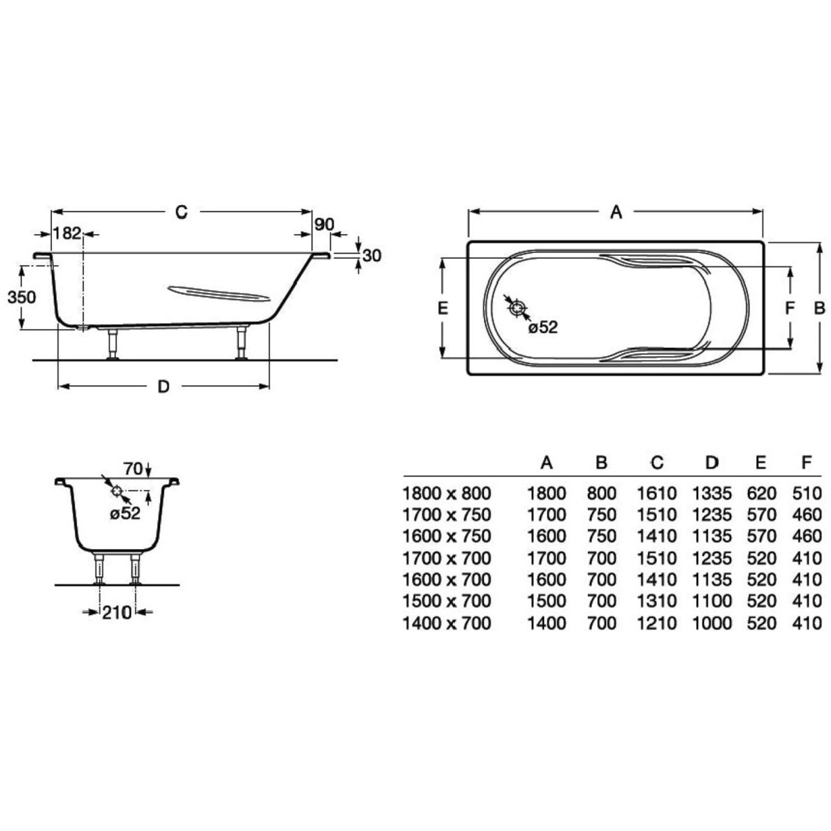 Roca Genova Rechteckige Badewanne 170x70 cm weiß A248363000