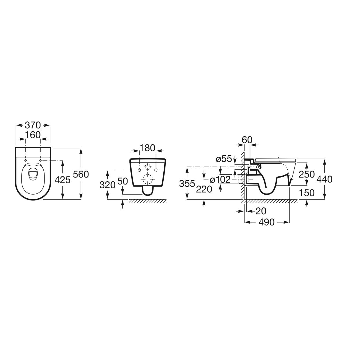 Roca Inspira WC-Becken hängend Spülrandlos seidenmatt A346527660
