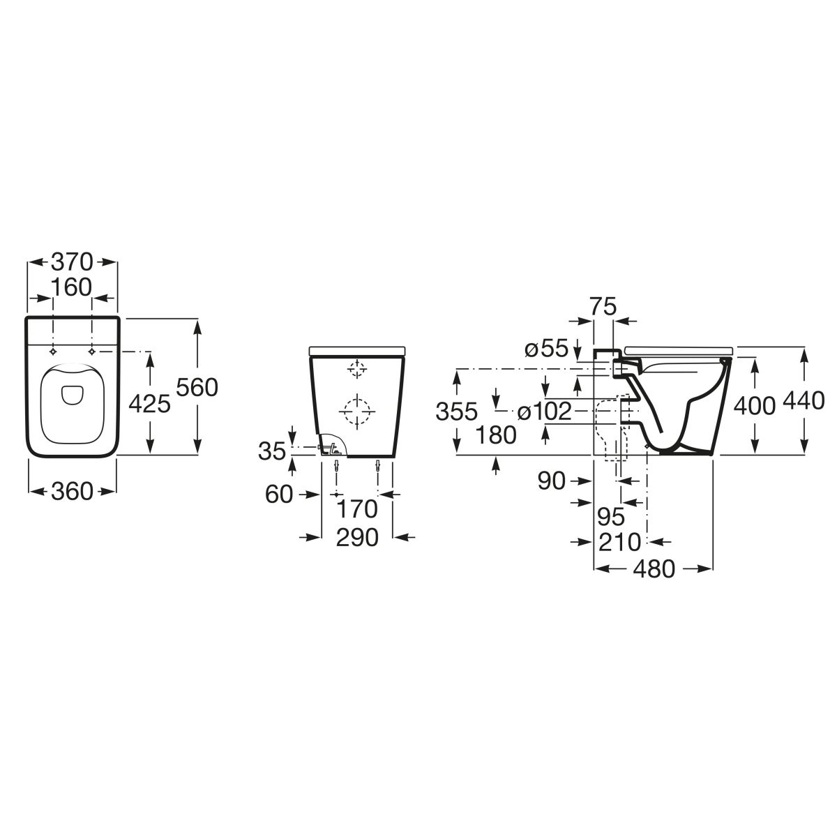 Roca Inspira WC-Becken stehend Spülrandlos weiß Matte A347537620