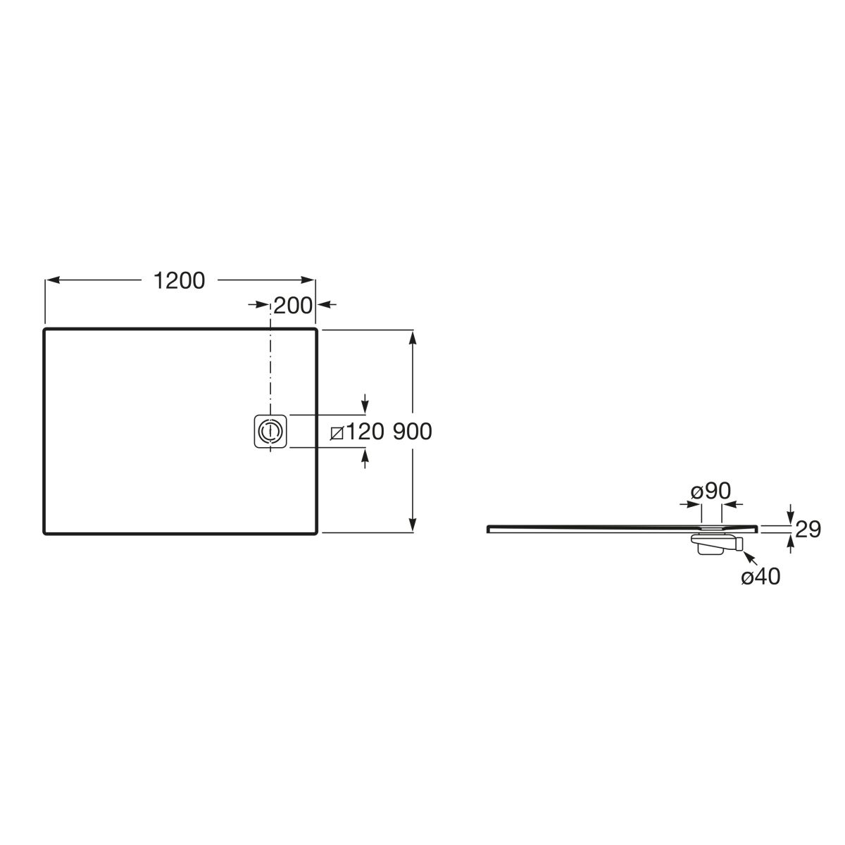- Höhe des Siphons vom Boden der Duschwanne: 6 cm, Durchfluss: 0,6 l/s