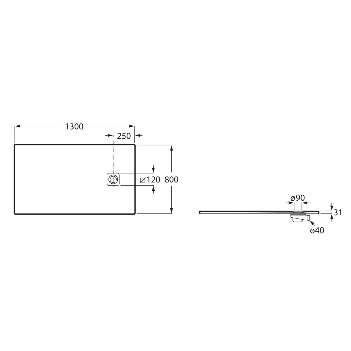 Roca Magma Rechteckige Duschwanne 130x80 cm perlmutt APE0151432003630
