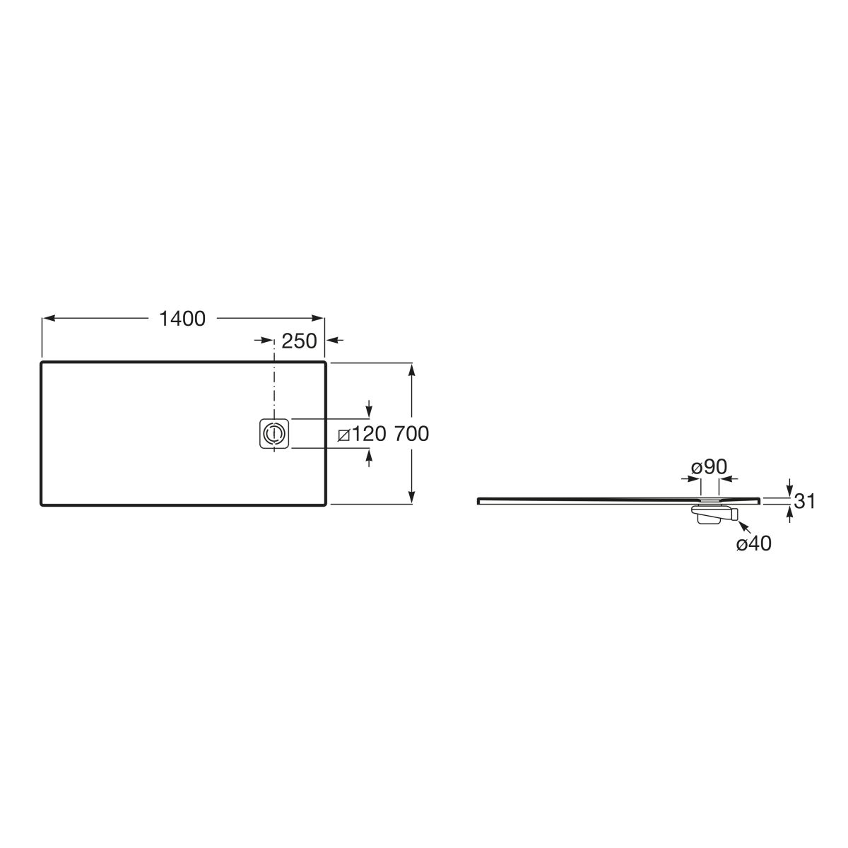 - Die Duschwanne enthält einen Siphon A27L079000 mit einer Abdeckung in der Farbe der Duschwanne