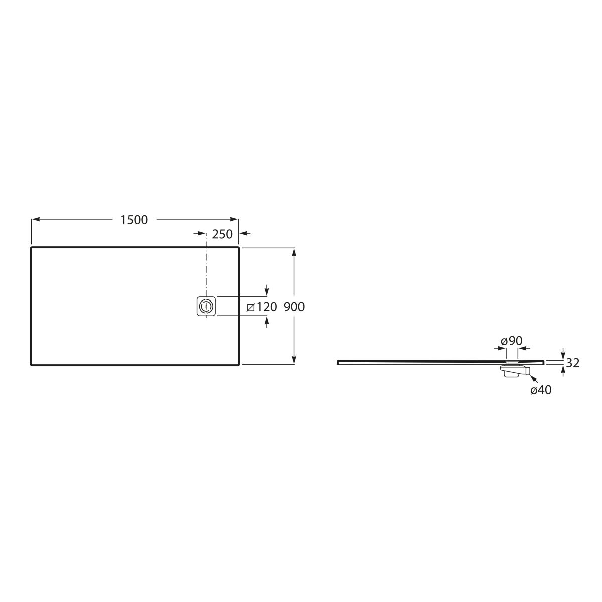 Roca Magma Rechteckige Duschwanne 150x90 cm perlmutt APE015DC38403630