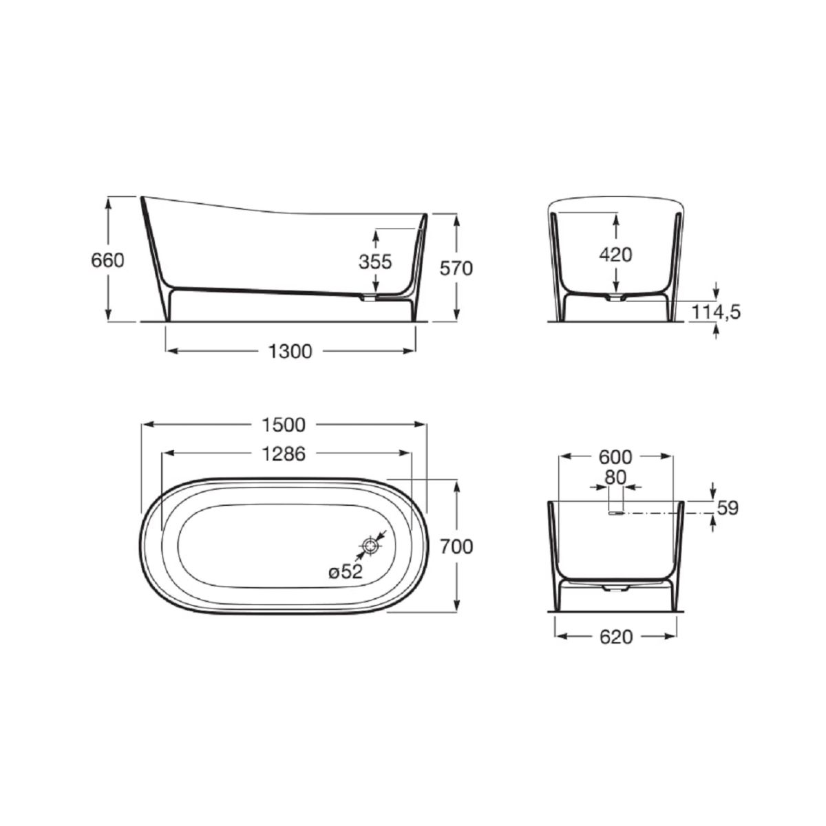 Roca Maui Freistehende Badewanne 150x70 cm oval weiß-zweifarbig A2484990B0