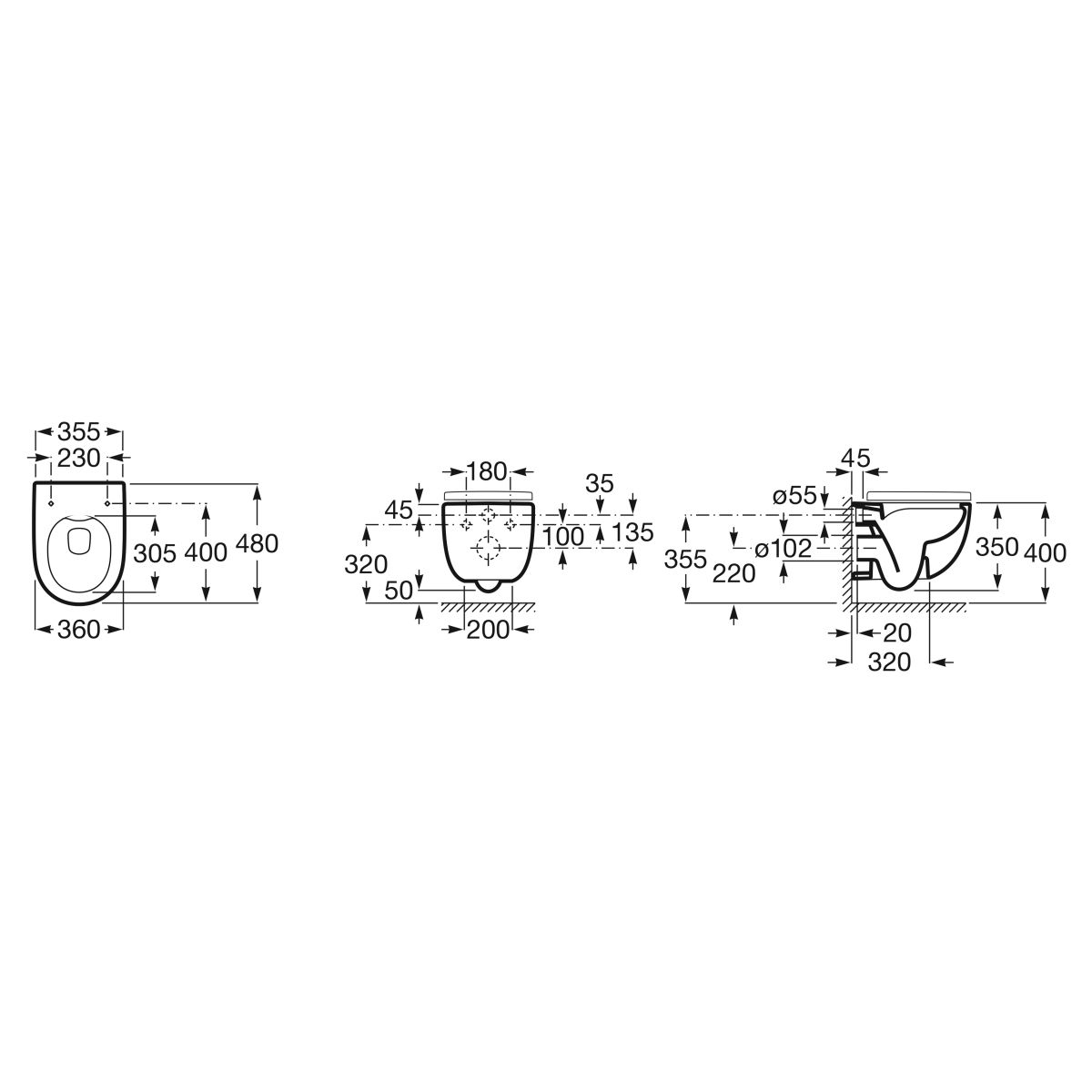 Roca Meridian WC-Becken hängend Spülrandlos weiß A346244S00